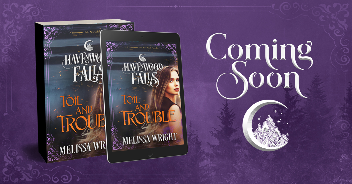 Havenwood Falls is a shared world, not a series, so feel free to read the stories in any order. Toil and Trouble will be part of the Signature series (New Adult/Adult Paranormal Fantasy), but the world also includes Havenwood Falls High (YA Paranormal Fantasy), Havenwood Falls Legends (Historical Paranormal Fantasy), and Sin & Silk (The Sexier Side of Havenwood Falls).